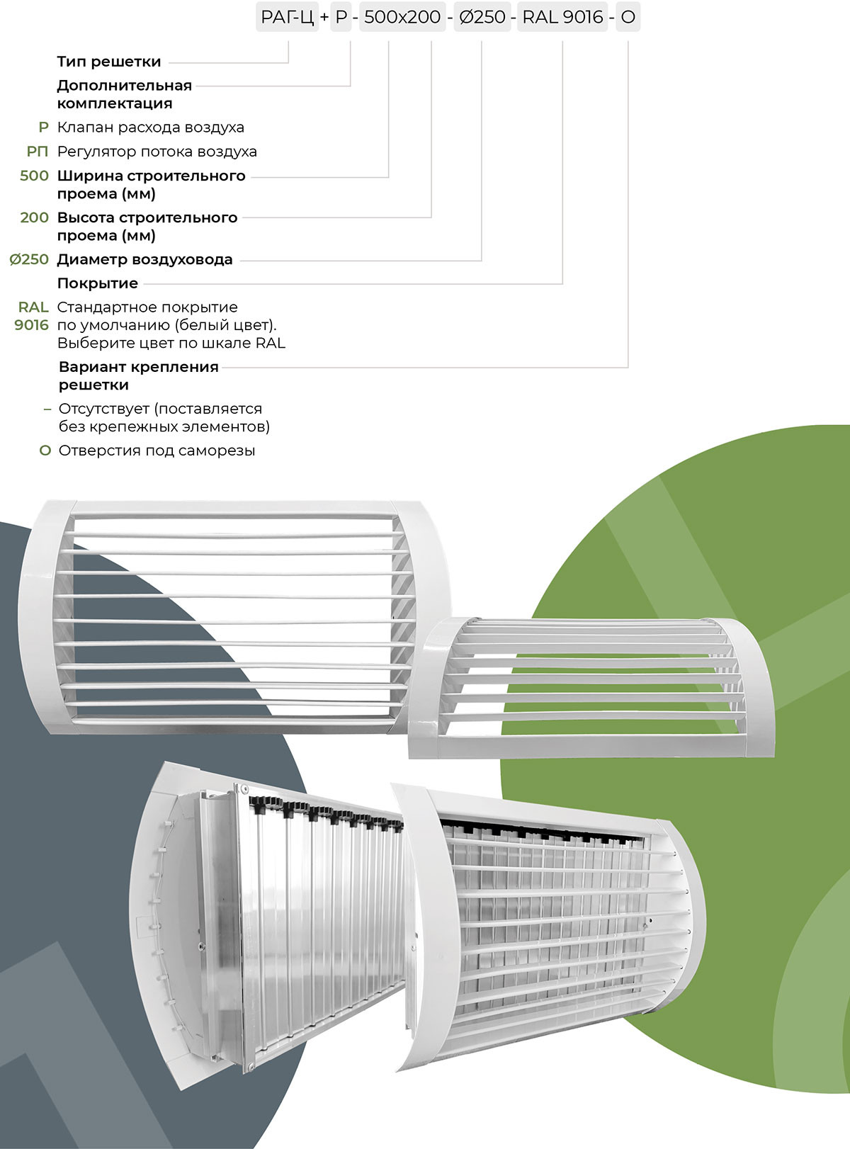 Заказать цилиндрическую решетку с клапаном расхода воздуха РАГ-Ц+Р