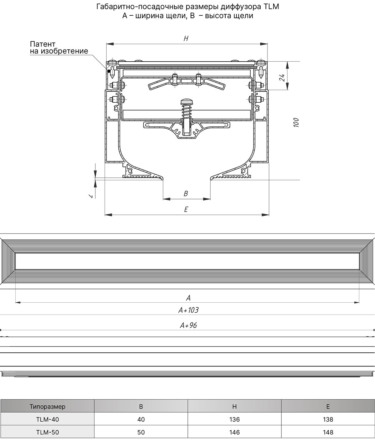 Конструкция вентиляционного щелевого диффузора обеспечивает эффективное распределение воздушных потоков с сохранением живого сечения диффузора и объема подаваемого воздуха при любом положении дефлектора.